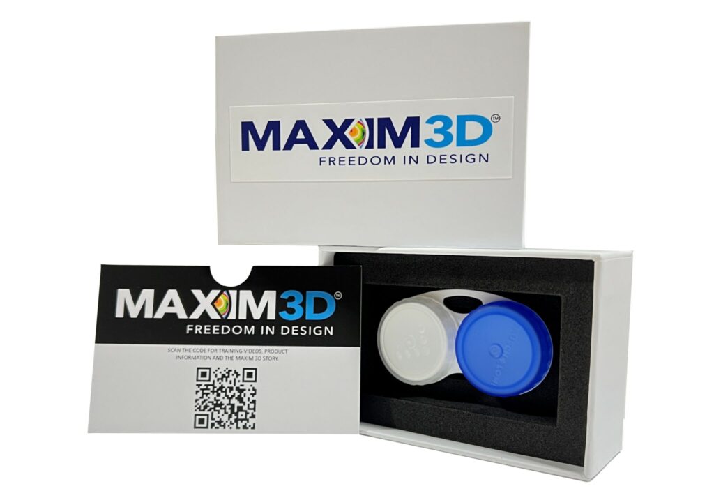 A "free form" design with infinite profile and modification capabilities for the best lens fit and function. The Maxim 3D can be fit empirically utilizing a corneo-scleral profilometer OR without. Design modifications available 360° over the corneal shape and out onto the sclera.